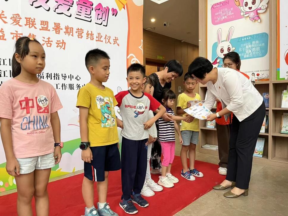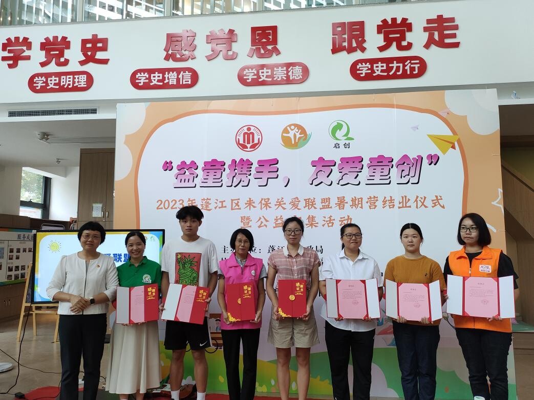 豐富多彩的暑期服務(wù),離不開各方社會(huì)力量的支持。暑假期間,兒童福利指導(dǎo)中心積極聯(lián)動(dòng)各個(gè)成員單位積極發(fā)揮專長(zhǎng)共同參與到暑期活動(dòng)中。在結(jié)營儀式里,分別為石沖社區(qū)黨群服務(wù)中心、江門市小象物業(yè)管理有限公司、廣東江門幼兒師范高等??茖W(xué)校 、江門市明哲社區(qū)心理服務(wù)中心、蓬江區(qū)吉吉體育健康服務(wù)中心、多元夢(mèng)想課堂項(xiàng)目組、廣東省千禾社區(qū)公益基金會(huì)等合作單位頒發(fā)感謝函,肯定他們的支持,促進(jìn)兒童友好聯(lián)盟的服務(wù)合作。