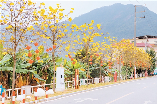 走在杜阮鎮(zhèn)上巷村的村道上,新種植的黃花風(fēng)鈴木開得正盛,形成了一條數(shù)百米的“黃金帶”;在棠下鎮(zhèn)五洞村,村道上新種植的簕杜鵑齊齊盛放、姹紫嫣紅;在潮連街道盧邊社區(qū),道路兩旁的樹木郁郁蔥蔥、枝繁葉茂,一派生機(jī)勃勃的景象……