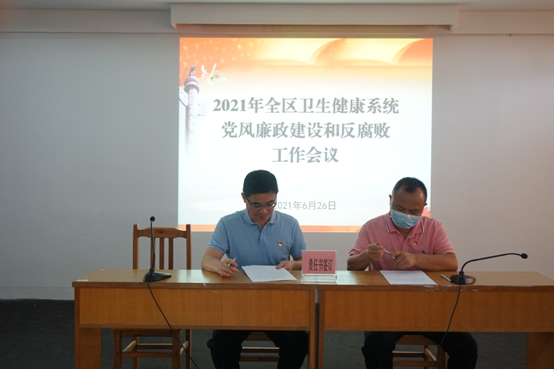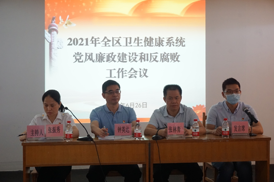 2021年6月26日上午,江門市蓬江區(qū)衛(wèi)生健康局黨組召開全區(qū)衛(wèi)生健康系統(tǒng)黨風(fēng)廉政建設(shè)和反腐敗工作會議,深入學(xué)習(xí)貫徹落實黨的十九大和十九屆二中、三中、四中、五中全會精神,總結(jié)2020年全區(qū)衛(wèi)生健康系統(tǒng)黨風(fēng)廉政建設(shè)和反腐敗工作,研究部署2021年各項工作任務(wù)。局黨組成員鐘英達、區(qū)紀(jì)委監(jiān)委駐局紀(jì)檢監(jiān)察組組長張林青在會上作了講話。局機關(guān)領(lǐng)導(dǎo)班子成員、各股室負責(zé)人、全體黨員、駐局紀(jì)檢監(jiān)察組同志、區(qū)屬各醫(yī)療衛(wèi)生單位黨組織書記、分管紀(jì)檢工作的領(lǐng)導(dǎo)等近60人參加了會議。會議由張振秀副局長主持。