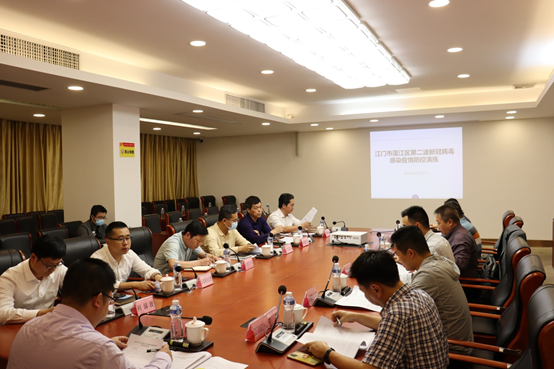 為保持新冠“乙類乙管”常態(tài)化防控指揮體系有效運行,全面提升新冠感染疫情快速處置能力,4月27日下午,蓬江區(qū)舉辦新冠病毒感染疫情防控桌面演練。區(qū)委常委、副區(qū)長謝樹濃、副區(qū)長利錦波和市疾控中心傳防所所長黃國參加本次演練。