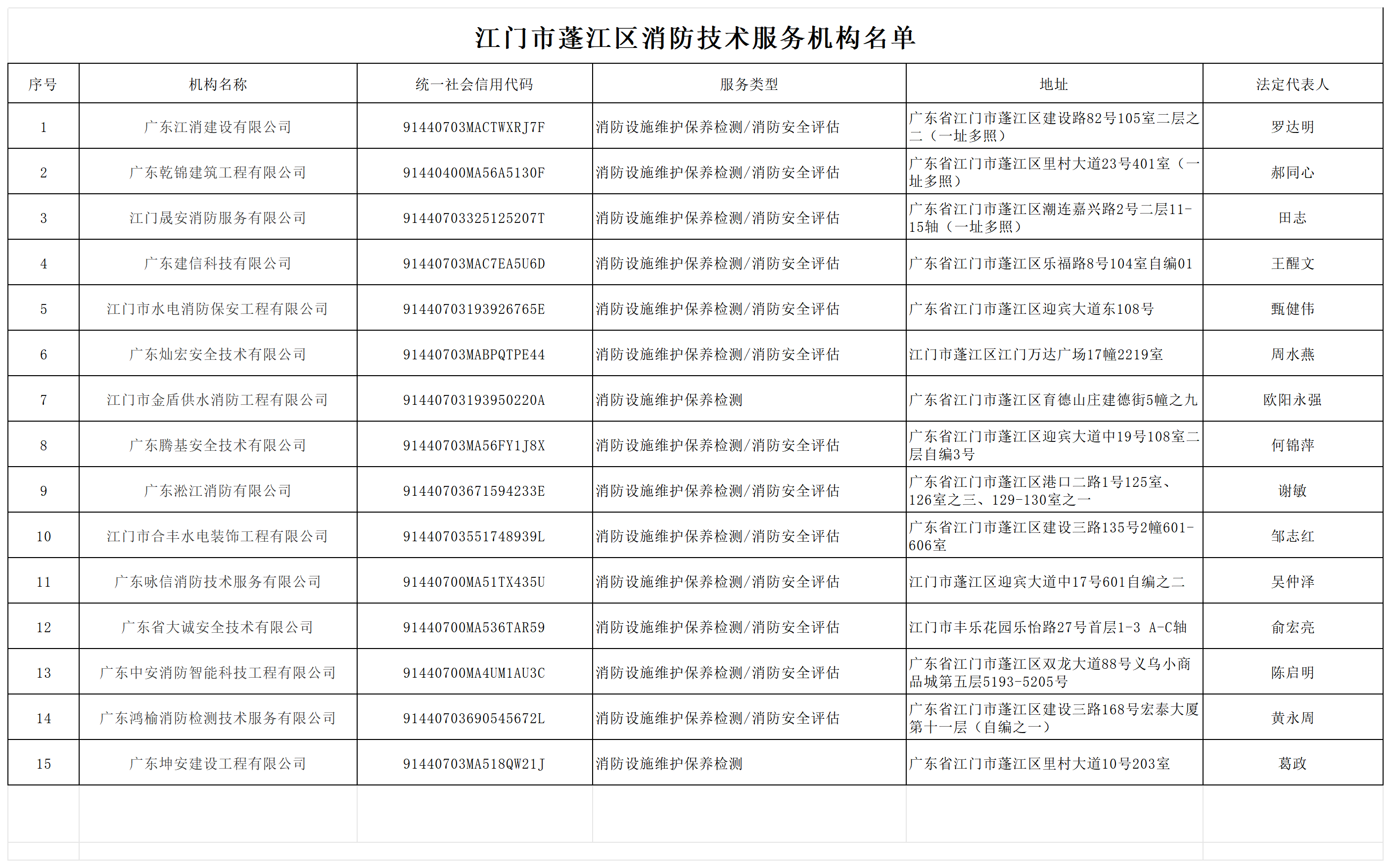 關(guān)于江門市蓬江區(qū)消防技術(shù)服務(wù)機構(gòu)名單及執(zhí)業(yè)信息查詢渠道的公示