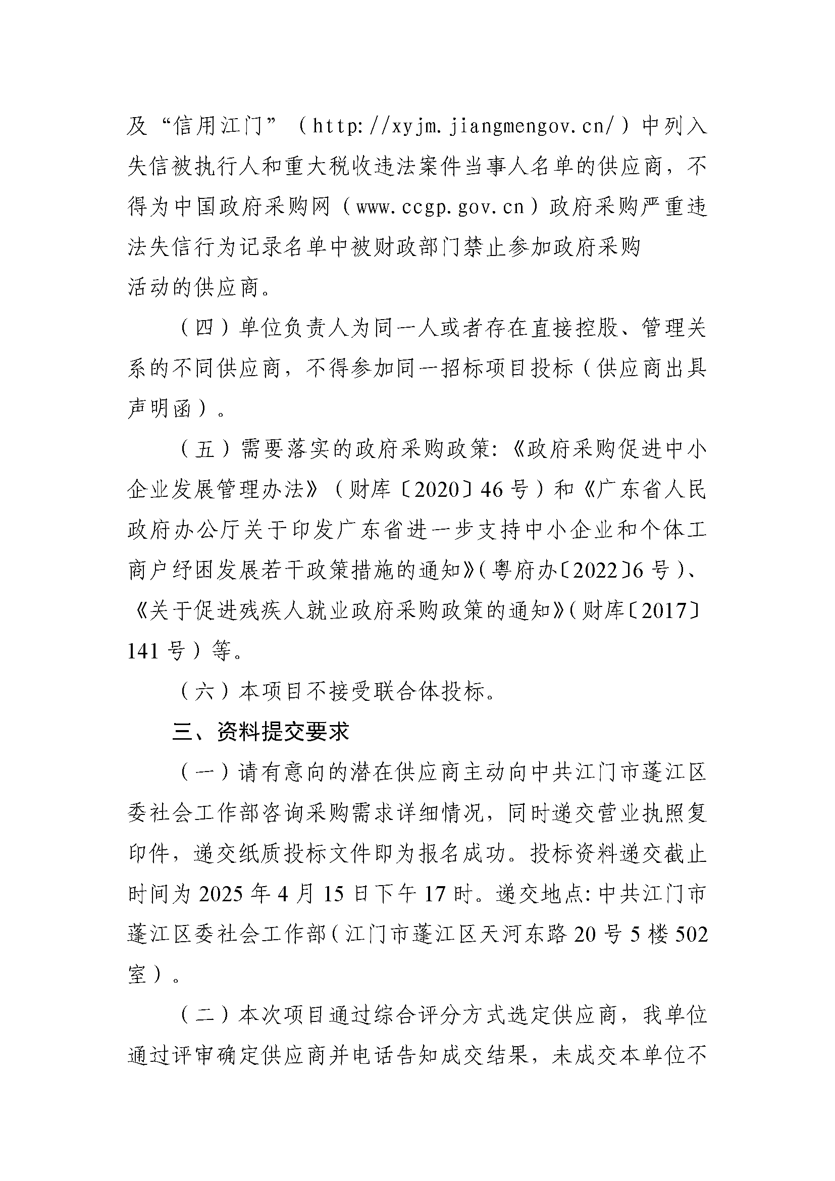 中共江門市蓬江區(qū)委社會工作部購買辦公耗材供應(yīng)服務(wù)項(xiàng)目采購公告