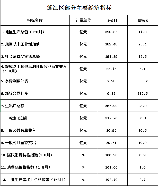 2021年1-9月蓬江區(qū)經(jīng)濟(jì)運(yùn)行簡(jiǎn)況