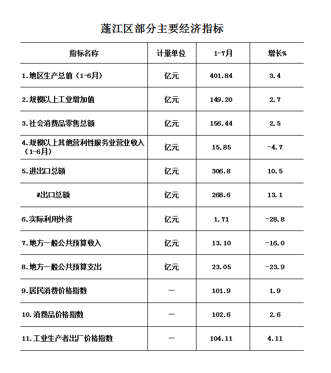 2022年1-7月蓬江區(qū)經(jīng)濟運行簡況