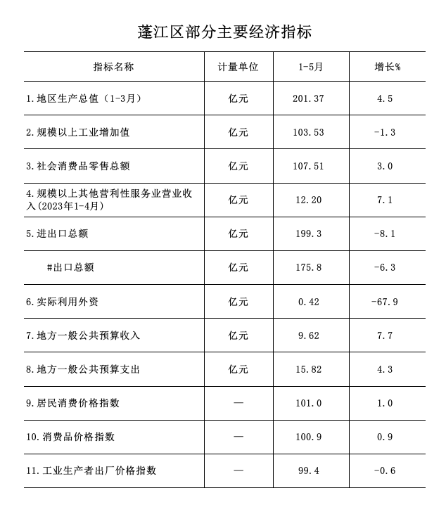 2023年1-5月蓬江區(qū)經(jīng)濟(jì)運(yùn)行簡(jiǎn)況