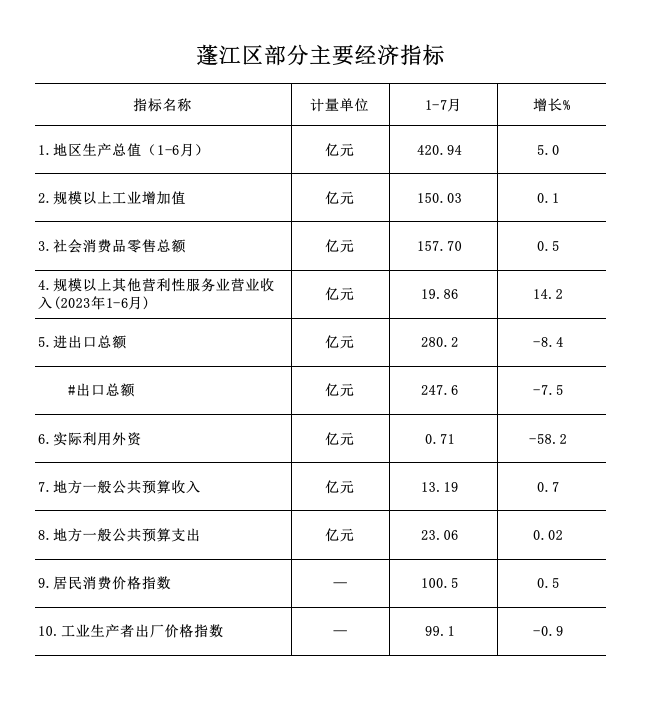 2023年1-7月蓬江區(qū)經(jīng)濟運行簡況