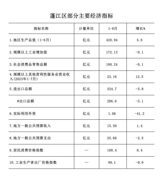 2023年1-8月蓬江區(qū)經(jīng)濟(jì)運(yùn)行簡(jiǎn)況