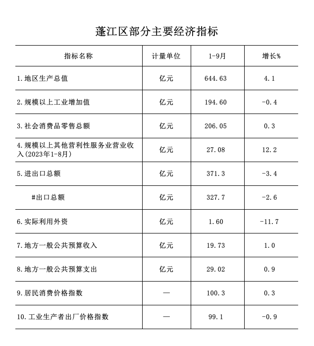 2023年1-9月蓬江區(qū)經(jīng)濟(jì)運(yùn)行簡況