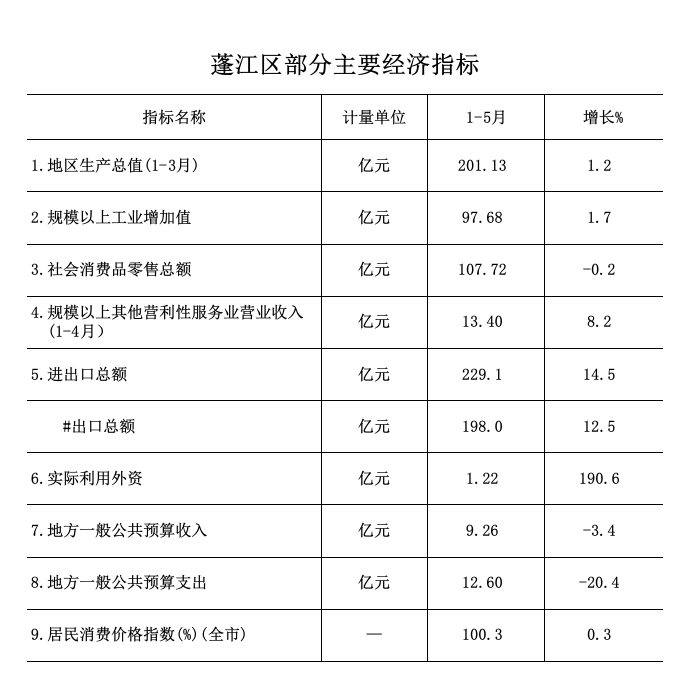 2024年1-5月蓬江區(qū)經(jīng)濟(jì)運(yùn)行簡況