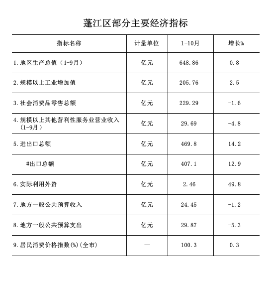 2024年1-10月蓬江區(qū)經(jīng)濟(jì)運(yùn)行簡況